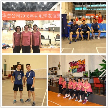 華杰公司2018年羽毛球友誼賽于6月29日舉行,比賽設男單、女單、男雙、女雙、混雙、48歲以上單打和48歲以上雙打共計7項賽事,參賽人員超過60人。經過4個多小時的角逐,各項賽事決出冠、亞、季軍共計30人次。