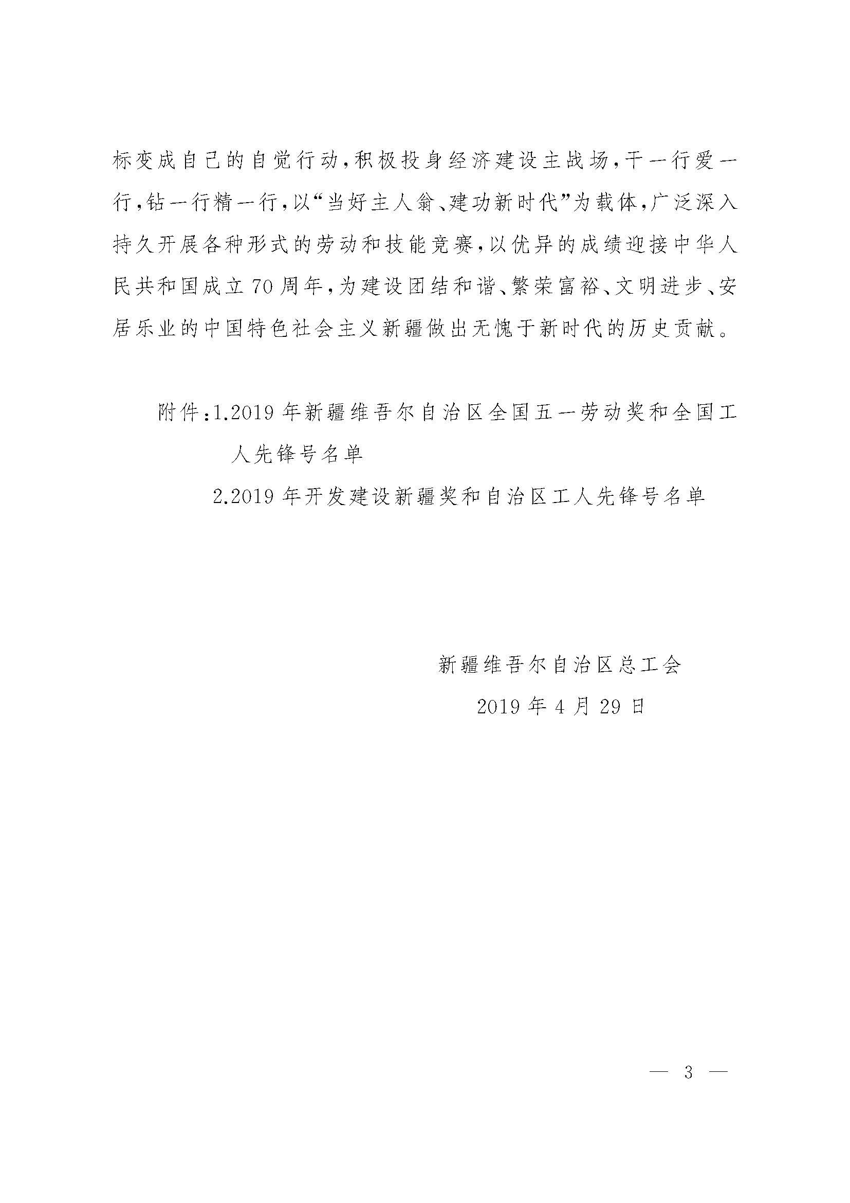 附《新疆維吾爾自治區(qū)總工會(huì)關(guān)于表彰2019年開(kāi)發(fā)建設(shè)新疆獎(jiǎng)和自治區(qū)工人先鋒號(hào)的決定》