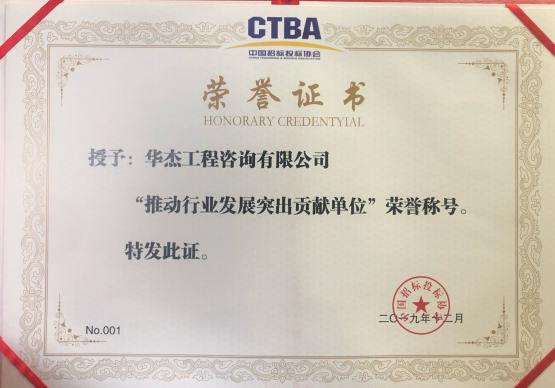 近日,中國(guó)招投標(biāo)協(xié)會(huì)授予華杰公司“推動(dòng)行業(yè)發(fā)展突出貢獻(xiàn)單位”、“轉(zhuǎn)型升級(jí)示范單位”兩項(xiàng)榮譽(yù)稱號(hào)。